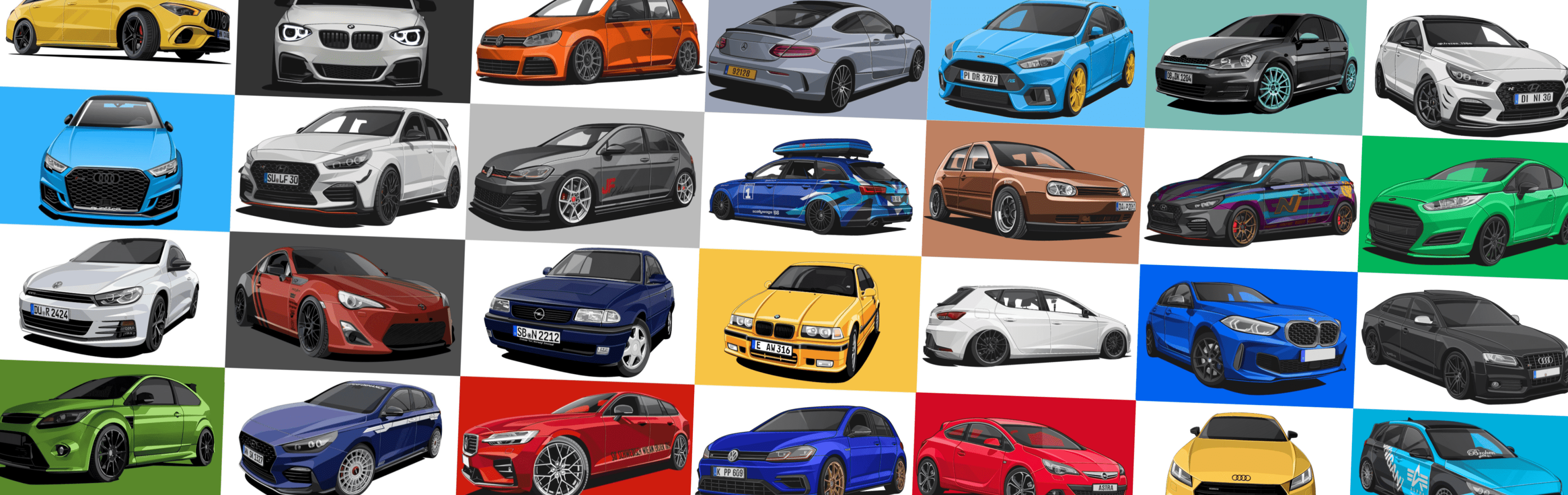 Auto-Verliebte aus ganz Deutschland, Österreich und der Schweiz haben ihr Fahrzeug bei Wirdruckendeinauto zeichnen und drucken lassen.